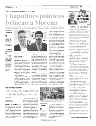 entre 2016 y 2021 con el Parti- bernó la entidad. Corral Jurado y Julieta Villalpando abando- La ceremonia del Grito es una