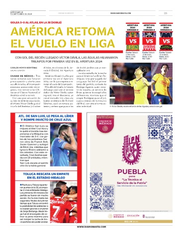 triunfo del América 3-0 sobre tente y certero que puso a los ción individual. ● Víctor Dávila, recién refuerzo de las Aguilas, debutó con gol