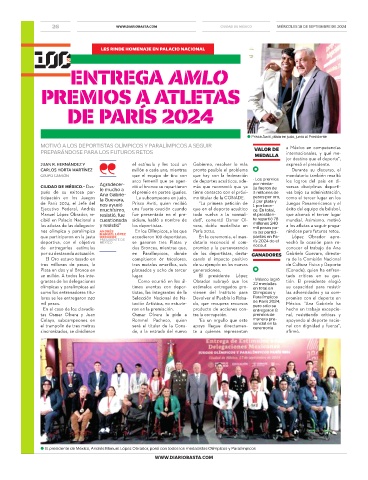que participaron en la justa MANUEL LÓPEZ accedieron 109 deportistas, En la ceremonia, el man- pantes en Pa- López Obrador apro-