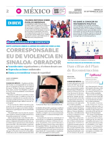 países, el dignatario descartó un deterioro, pe- tadounidenses actuaran en México sin con- rial y Urbano, informó que inmuebles afectados, 3 mil