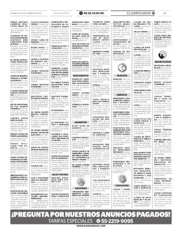 VIERNES 20 DE SEPTIEMBRE DE 2024 CIUDAD DE MÉXICO 55.22.19.90.95 CLASIFICADOS B! 21