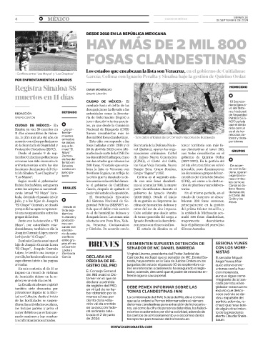 cia, la cifra más alta del año, de mientos dos mil 863 fosas clandestinas. • Son datos oficiales de la Comisión Nacional de Búsqueda losos y desa-