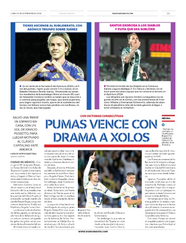 no estuvo certero, ahogando por la defensa de Xolos. Pos- linos Sin embargo, lo que más se Con esto, Pumas se colocó