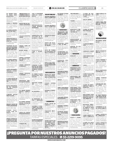 MIÉRCOLES 25 DE SEPTIEMBRE DE 2024 CIUDAD DE MÉXICO 55.22.19.90.95 CLASIFICADOS B! 21