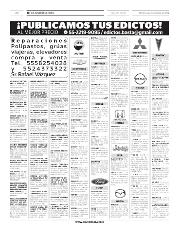 22 B! CLASIFICADOS CIUDAD DE MÉXICO MIÉRCOLES 2 DE OCTUBRE DE 2024