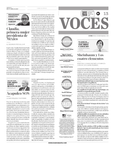 VALOR CIVIL so tropical. Sheinbaum adelantó que en enero hará un cam-