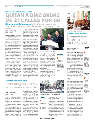 superior y el futuro del país. de Díaz Ordaz. Hoy esa colonia tió su testimonio de la masacre. reconocimiento a la lucha estu-