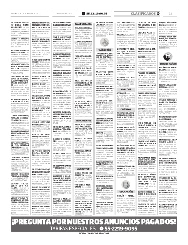 JUEVES 3 DE OCTUBRE DE 2024 CIUDAD DE MÉXICO 55.22.19.90.95 CLASIFICADOS B! 21