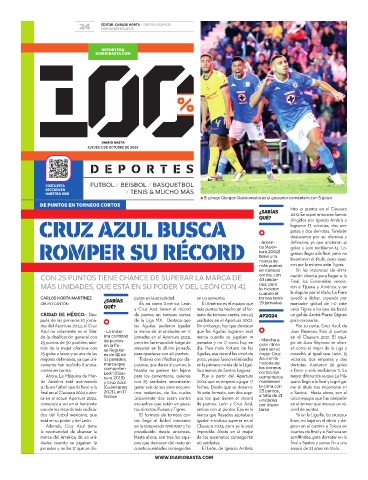 comienza a ver en el horizonte escuadras que están en pues- de puntos: León y Cruz Azul, por dispu- en el torneo que impuso un ré-