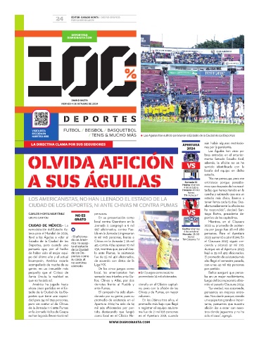 NUESTRA WEB ● Las Aguilas han sufrido para llenar el Estadio de la Ciudad de los Deportes
