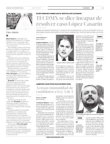 en poco tiempo.” vo alcalde de Álvaro Obregón, ró en la respectiva sesión pú- do acusó la