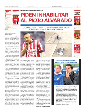 cas entre la prensa deportiva. ● Piojo Alvarado fue convocado para el juego ante el Atlas, tras aventar el explosivo