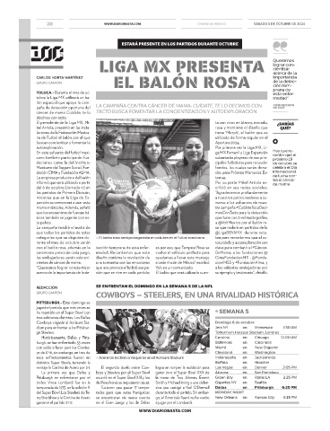categorías que se disputen du- ● El balón rosa será protagonista en octubre en el futbol mexicano bre para recordarnos que el au-