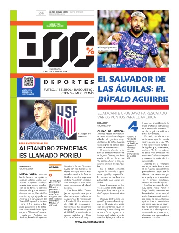 ALEJANDRO ZENDEJAS antes de los 60 minutos. América: las Águilas que, actualmente,