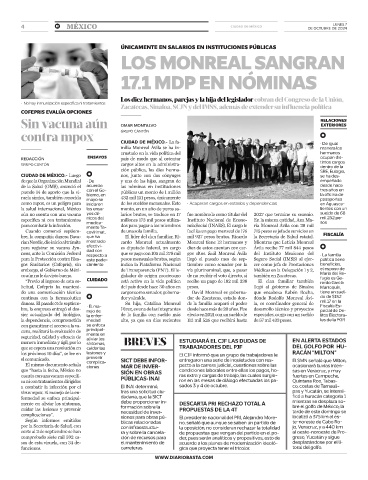 continua con la farmacéutica dor y alcalde. dor de Zacatecas, estado don- dónde Rodolfo Monreal Ávi- do de $152