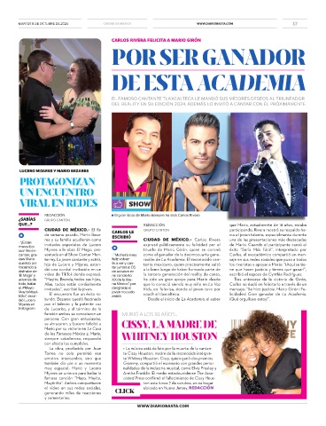 cantan, gra- sentada en el Show Center Mon- • “Me haría muy como el ganador de la decimocuarta gene- Carlos, el exacadémico compartió un men-