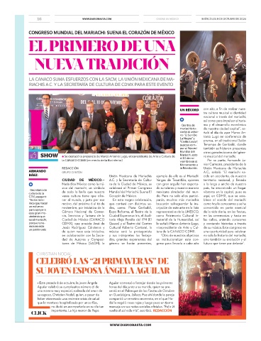 • Secretario de de todo lo bello que nuestra Mundial del Mariachi: Suena El mexicana alrededor del mun- vibrante en la capital, pues es