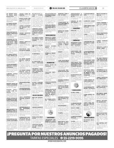 MIÉRCOLES 9 DE OCTUBRE DE 2024 CIUDAD DE MÉXICO 55.22.19.90.95 CLASIFICADOS B! 21