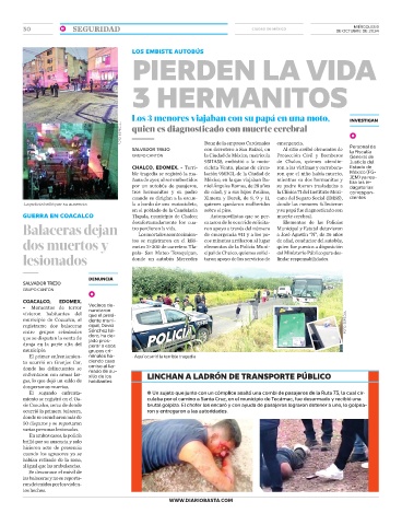 GUERRA EN COACALCO Tlapala, municipio de Chalco; Automovilistas que se per- muerte cerebral.
