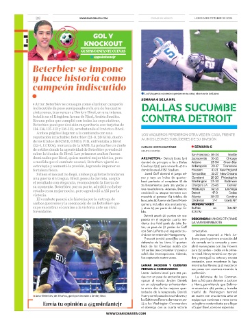 dominados por Bivol, quien mostró mejor táctica, pero ARLINGTON.- Detroit Lions (4-1) Jacksonville 16-35 Chicago