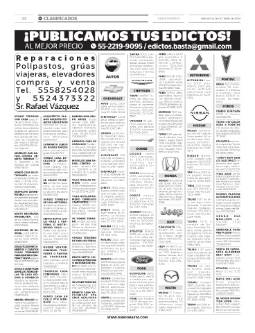 22 B! CLASIFICADOS CIUDAD DE MÉXICO MARTES 15 DE OCTUBRE DE 2024