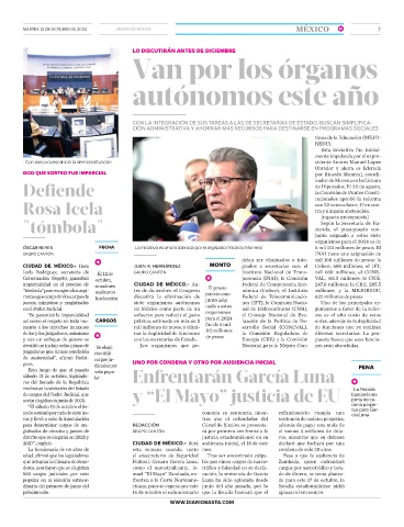 "tómbola" para escoger a los aspi- realizaron tes de diciembre, el Congreso • El presu- nómica (Cofece), el Instituto millones; y la MEJOREDU,