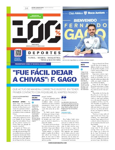 Chivas. fue el pasa- del tema, pero tengo el regis- DT DE BOCA JUNIORS “Vuelvo a mi casa, vuelvo al