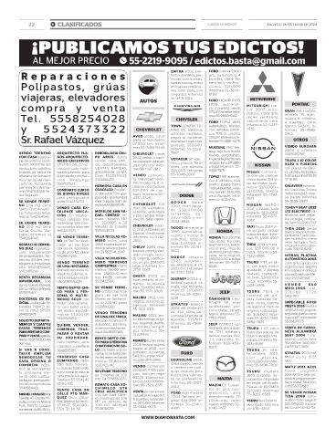22 B! CLASIFICADOS CIUDAD DE MÉXICO JUEVES 17 DE OCTUBRE DE 2024