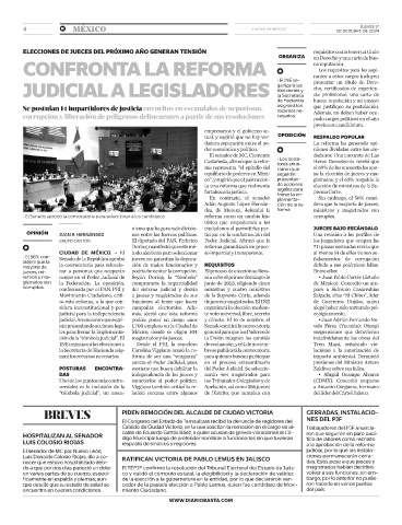 Uno de los puntos más contro- someterlos al poder político. los Tribunales Colegiados y de (CDMX): Concedió amparos