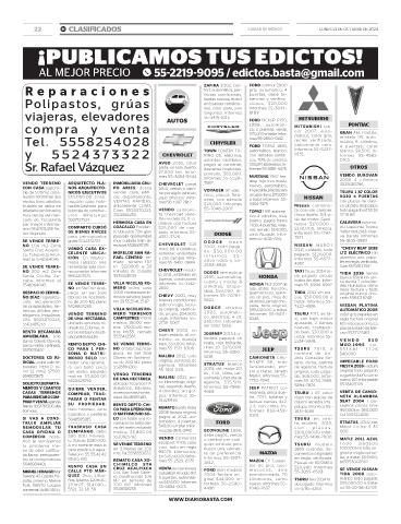 22 B! CLASIFICADOS CIUDAD DE MÉXICO LUNES 21 DE OCTUBRE DE 2024