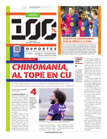 CÉSAR HUERTA BRILLÓ CON DOBLETE Y MEMO MARTÍNEZ PUSO Huerta en la jugada previa que