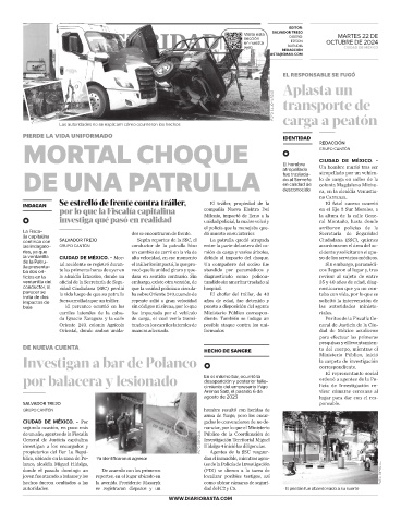 da Ignacio Zaragoza y la calle de carga, el cual venía transi- diente. También se indaga un Peritos de la Fiscalía Ge-