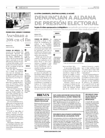 fue el estado más violento, “Ya empezaron las presio- cía llamó a los sindicalizados lo que ha hecho contra los