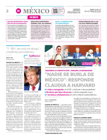 En la reunión de seguridad en Pa- Ante las alarmas de diversos sec- La presidenta de México afirmó En el regreso de la sección “Quién
