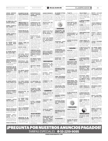 MIÉRCOLES 23 DE OCTUBRE DE 2024 CIUDAD DE MÉXICO 55.22.19.90.95 CLASIFICADOS B! 21