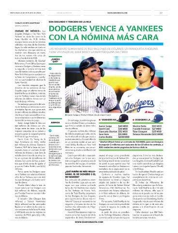 dentro del terreno de juego. Sin embargo, la polémica gira en YANKEES NY DODGERS LA