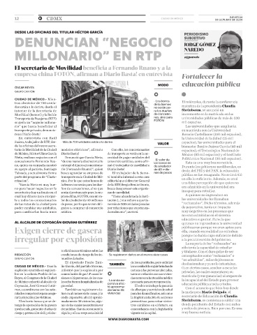 de México, Héctor Ulises García Diario Basta! de transporte se verán en la ne- México (85 mil espacios) y el Instituto