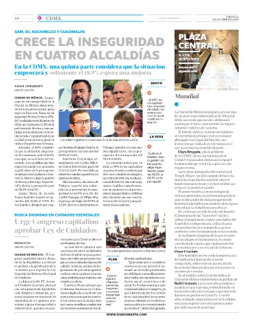 rá. En contraste, solo el 18.9% 69.9% al 72.6%. cepción disminuyendo del •Gustavo A. de la CDMX, lidera con entusiasmo el