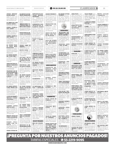 JUEVES 24 DE OCTUBRE DE 2024 CIUDAD DE MÉXICO 55.22.19.90.95 CLASIFICADOS B! 21
