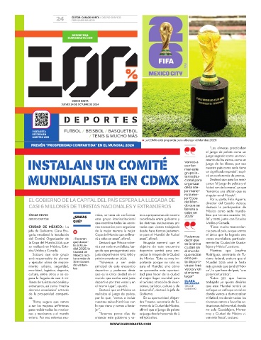 EL GOBIERNO DE LA CAPITAL DEL PAÍS ESPERA LA LLEGADA DE jor Copa director del Estadio Azteca,