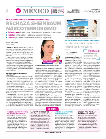 los recientes enfrentamientos violentos en Gue- bomba, ocurridas la madrugada del 24 de octu- bierno, los gobiernos federal En Baja California Sur, se
