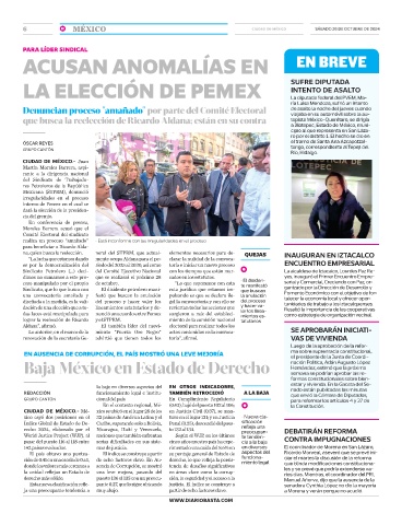 Sindicato Petrolero (...) deci- del Comité Ejecutivo Nacional con los tiempos que están mar- La alcaldesa de Iztacalco, Lourdes Paz Re-