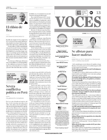 problemas de corrupción que han lle- la confianza dependerá de la capacidad BASTA! es un periódico que circula de lunes -Que de una vez investiguen a los árbitros sobornados