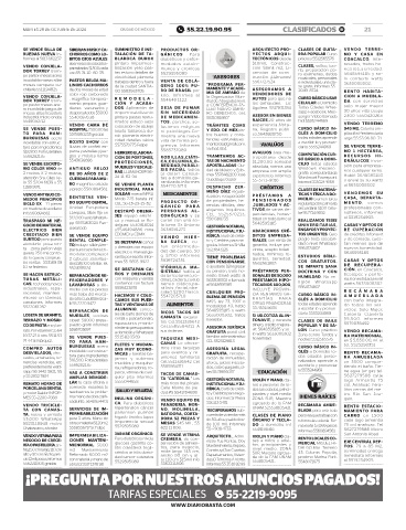 MARTES 29 DE OCTUBRE DE 2024 CIUDAD DE MÉXICO 55.22.19.90.95 CLASIFICADOS B! 21