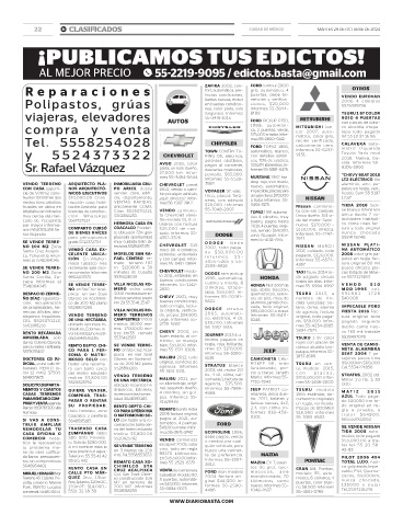 22 B! CLASIFICADOS CIUDAD DE MÉXICO MARTES 29 DE OCTUBRE DE 2024