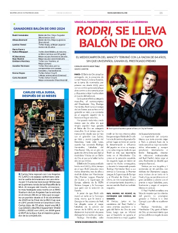 el Balón de Oro en categoría ● Rodri guió a España a ganar la Euro y al City, la Premier