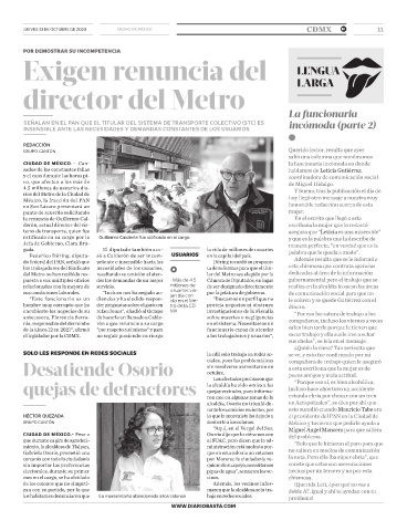 del Metro no han recibido res- resaltando su omisión al aten- lar del Metro sea elegido por la dedicadas al área de la información