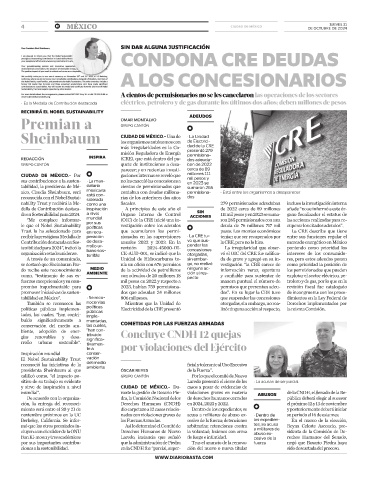 recibir la prestigiosa Medalla de peración sionados en las supervisiones • La CRE tu- tenían que ser recuperados por entre sus funciones regular el