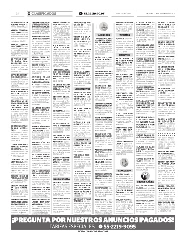 24 B! CLASIFICADOS 55.22.19.90.95 CIUDAD DE MÉXICO VIERNES 1 DE NOVIEMBRE DE 2024
