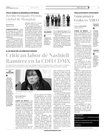 de Shanghái. reconocimiento fue recibido • Brugada ha iniciativa mundial de la Orga- hacia el expresidente Andrés y acusan